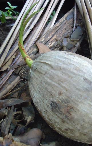 Keywords: Germinating coconut.jpg en Germinating coconut own Obsidian Soul 2011-01-15 Cc-zero Coconut sprouts Coconut seedlings