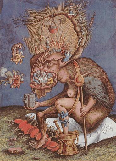 | Keywords: Gerung, Matthias - Satire auf die katholische Geistlichkeit - vor 1536.gif Satire auf die katholische Geistlichkeit woodcut hand-colored 30 7 × 22 5 cm http //www payer de/religionskritik/karikatur264 gif Karikatur264 http //www payer de/religionskritik/karikaturen17 htm < 1536 attributed to PD-old-100 Matthias Gerung Satire auf die katholische Geistlichkeit 1530s art Monsters in art 16th-century woodcuts of people Anti-clerical art Dimensions of people Humans with fictional creatures Seals in art Uploads by Mattes from external sources People with fire in art Colored woodcuts Floating in art Floating people Mouths open |
