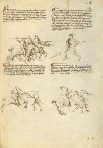 | Keywords: Getty Ms. Ludwig XV 13 46r - Fiore dei Liberi - Combat against an Equestrian Opponent with Lance - Google Art Project.jpg 1340 1450 about 1340/1350 - before 1450 6816880 Fiore Furlan dei Liberi da Premariacco Italian Italian 1340 - 1450 /collection/the-j-paul-getty-museum/artwork/combat-against-an-equestrian-opponent-with-lance-fiore-furlan-dei-liberi-da-premariacco-italian-about-13401350-before-1450/6883558/ Fiore Furlan dei Liberi da Premariacco Italian about 1340/1350 - before 1450 author /artist/fiore-furlan-dei-liberi-da-premariacco/6826201/ 6826201 /collection/the-j-paul-getty-museum/ The J Paul Getty Museum 343005 http //www getty edu/museum 3/13/2012 12 15 24 AM /collection/the-j-paul-getty-museum/artwork/combat-against-an-equestrian-opponent-with-lance-fiore-furlan-dei-liberi-da-premariacco-italian-about-13401350-before-1450/6883558/ 1410 about 1410 Tempera colors gold leaf silver leaf and ink on parchment 279 6883558 True 1410 3/25/2012 2 57 05 PM lido getty edu-gm-obj143547 http //www getty edu/art/gettyguide/artObjectDetails artobj 143547 http //www getty edu/legal/copyright html Folio 1410 1420 Not on display w206 x h279 cm about 1410 False 0 6953125 Part combat-against-an-equestrian-opponent-with-lance-fiore-furlan-dei-liberi-da-premariacco-italian-about-13401350-before-1450 Combat against an Equestrian Opponent with Lance c 206 Tempera colors gold leaf silver leaf and ink on parchment http //www getty edu/legal/copyright html special url_id iAEc5itTkBLtbA PD-old-100-1923 1450 MS LUDWIG XV 13 Getty museum - The Flower of Battle Google Art Project works by Fiore dei Liberi |