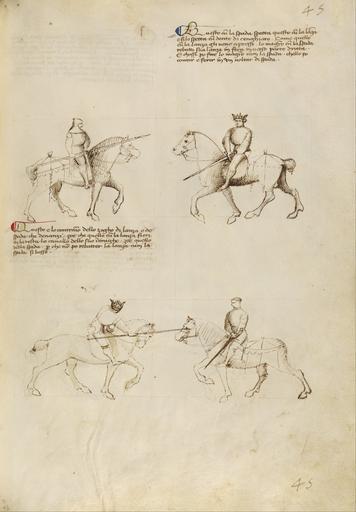 | Keywords: Getty Ms. Ludwig XV 13 43r - Fiore dei Liberi - Equestrian Combat with Lance and Sword - Google Art Project.jpg 1340 1450 about 1340/1350 - before 1450 6816880 Fiore Furlan dei Liberi da Premariacco Italian Italian 1340 - 1450 /collection/the-j-paul-getty-museum/artwork/equestrian-combat-with-lance-and-sword-fiore-furlan-dei-liberi-da-premariacco-italian-about-13401350-before-1450/6873757/ Fiore Furlan dei Liberi da Premariacco Italian about 1340/1350 - before 1450 author /artist/fiore-furlan-dei-liberi-da-premariacco/6826201/ 6826201 /collection/the-j-paul-getty-museum/ The J Paul Getty Museum 343005 http //www getty edu/museum 3/13/2012 12 14 58 AM /collection/the-j-paul-getty-museum/artwork/equestrian-combat-with-lance-and-sword-fiore-furlan-dei-liberi-da-premariacco-italian-about-13401350-before-1450/6873757/ 1410 about 1410 Tempera colors gold leaf silver leaf and ink on parchment 279 6873757 True 1410 3/25/2012 2 50 25 PM lido getty edu-gm-obj143541 http //www getty edu/art/gettyguide/artObjectDetails artobj 143541 http //www getty edu/legal/copyright html Folio 1410 1420 Not on display w206 x h279 cm about 1410 False 0 6953125 Part equestrian-combat-with-lance-and-sword-fiore-furlan-dei-liberi-da-premariacco-italian-about-13401350-before-1450 Equestrian Combat with Lance and Sword e 206 Tempera colors gold leaf silver leaf and ink on parchment http //www getty edu/legal/copyright html special url_id zwECNkpCaCB0Ew PD-old-100-1923 1450 MS LUDWIG XV 13 Getty museum - The Flower of Battle Google Art Project works by Fiore dei Liberi |