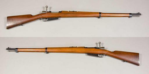 Keywords: Gevär försöksmodell 1892 - System Mauser - 8x58R - Armémuseum.jpg en Sweden Experimental rifle m/1892 tested in the rifle trials that led to the Swedish Mauser Made by Mauser Oberndorf a/N Germany Caliber 8x58mmR Danish Krag the Swedish standard rifle caliber prior to the 6 5x55mm; the 8x58mmR rounds tested had a steel jacketed 14 5 gr bullet over smokeless powder with a muzzle velocity of 605 m/s fixed external magazine capacity 4 rounds Length 1235 mm barrel length 735 mm weight 3 84 kg From the collections of Armémuseum Swedish Army Museum Stockholm Armémuseum The Swedish Army Museum through the Digital Museum http //www digitaltmuseum se For copyright waiver see AM 033382 Armémuseum The Swedish Army Museum PD-old Military weapons of Sweden Firearms in the Swedish Army Museum Images from Swedish Army Museum |