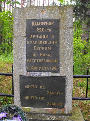 Keywords: Ghetto Iuje 4c.jpg ru Памятник мемо иального комплекса на месте убийства 220 ев еев Ивье нацистами и полицаями 2 августа 1941 года аходится ядом с Ивье у де евни Стоневичи у очище Стоневичи у до оги H-6147 2012-06-15 own Vadim Akopyan 53 928197 25 810582 cc-zero Uploaded with UploadWizard Ghetto Iuje |