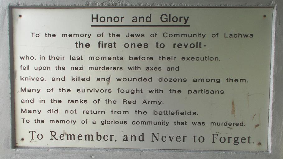 Keywords: Ghetto Lakhva (Brest Region) 1f.jpg ru Памятник ев еям Лахвы восставшим в гетто п отив нацистов аходится на цент альной площади де евни 2014-05-10 10 42 25 own Avner 52 213162 27 101027 cc-zero Ghetto Lachva Luniniec District Uploaded with UploadWizard