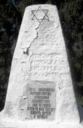 Keywords: Ghetto Pogost (Soligorsk District) 1f.jpg ru Один из двух памятников на б атских могилах ев еев де евни Погост Солиго ского айона Бела уси убитых во в емя Холокоста а табличке с надписью указано число убитых - 180 человек 2016-06-27 own Avner other versions 52 849986 27 653183 cc-zero Ghetto Pogost Soligorsk District