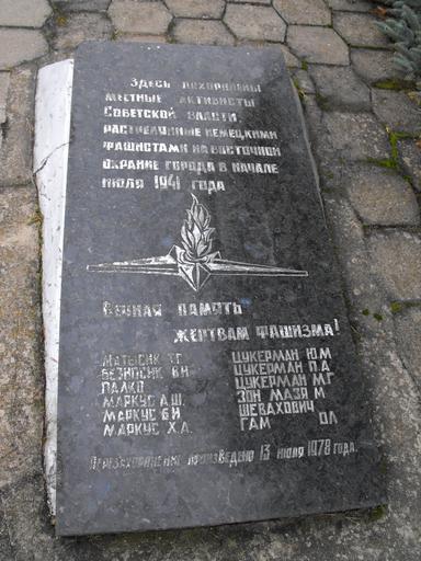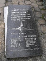 | Keywords: Ghetto Volkovysk 2a.jpg  ru Волковыск у очище По оховня Памятная плита с фамилиями нескольких волковыских ев еев убитых в 1941-1943 годах Установлена за памятником ми ным жителям - же твам нацистов 2012-10-11 11 01 30 own Avner cc-zero Uploaded with UploadWizard Ghetto Vawkavysk |