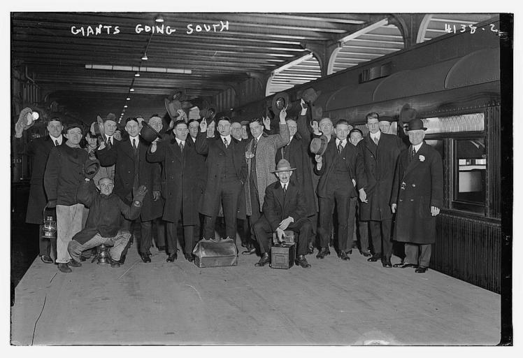 | Keywords: Giants going South (LOC) (15834732634).jpg Bain News Service publisher Giants going South 1917 date created or published later by Bain 1 negative glass ; 5 x 7 in or smaller Notes Title from data provided by the Bain News Service on the negative Forms part of George Grantham Bain Collection Library of Congress Subjects Baseball Format Glass negatives Rights Info No known restrictions on publication Repository Library of Congress Prints and Photographs Division Washington D C 20540 USA http //hdl loc gov/loc pnp/pp print hdl loc gov/loc pnp/pp print General information about the Bain Collection is available at http //hdl loc gov/loc pnp/pp ggbain hdl loc gov/loc pnp/pp ggbain Higher resolution image is available Persistent URL http //hdl loc gov/loc pnp/ggbain 23797 hdl loc gov/loc pnp/ggbain 23797 Call Number LC-B2- 4138-2 https //www flickr com/photos/library_of_congress/15834732634/ Giants going South LOC LOC-image ggbain 23797 https //www flickr com/people/8623220 N02 The Library of Congress http //www loc gov/rr/print/195_copr html noknown The Library of Congress Flickr Commons PD-Bain The Library of Congress http //flickr com/photos/8623220 N02/15834732634 2015-02-15 02 57 56 pd 1917 in Major League Baseball New York Giants baseball Group photographs of baseball teams Baseball in Texas |