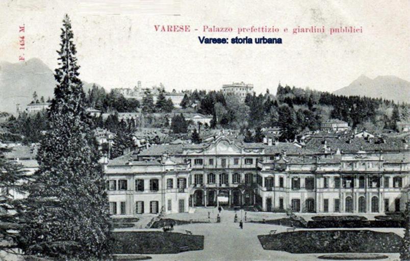 Keywords: Vista dalla pineta del parterre con la grande fontana e Palazzo Estense (1766-73). varese giardinipubblici palazzoestense