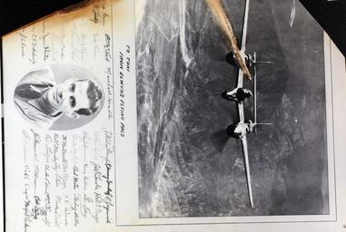 | Keywords: gibbon world war two worldwartwo china text photo border Elwyn Gibbon (b.1911 d.1942) was an American pilot who served as a pilot in the Chinese Air Force in the Foreign Volunteer Squadron. Later he served as a Vultee Aircraft Company test pilot in Karachi, India, where he died in a plane crash in 1942. Tags: Elwyn H. Gibbon Special Collection Photo Repository: San Diego Air and Space Museum Archive Elwyn Gibbon (b.1911 d.1942) was an American pilot who served as a pilot in the Chinese Air Force in the Foreign Volunteer Squadron. Later he served as a Vultee Aircraft Company test pilot in Karachi, India, where he died in a plane crash in 1942. Tags: Elwyn H. Gibbon Special Collection Photo Repository: San Diego Air and Space Museum Archive |