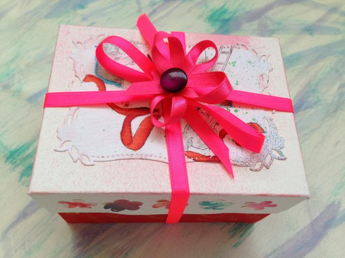 Keywords: gift box present ribbon celebration birthday package wrapping cardboard paper craft embellishment carton container pack