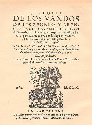 Keywords: Gines Perez de Hita Titul.jpg en The title page of Historia de los vandos de los Zegríes y Abencerrajes Ginés Pérez de Hita Barcelona 1610 ru Хинес Пе ес де Ита Повесть о Сег и и Абенсе ахах мав итанских ыца ях из Г анады Титульный лист Издание 1610 года Ба селона es La portada de Historia de los vandos de los Zegríes y Abencerrajes Ginés Pérez de Hita Barcelona 1610 Сделал сам Авто книги Хинес Пе ес де Ита Книга издана в 1610-ом году PD-old Ginés Pérez de Hita Title pages from Spain Spanish language literature