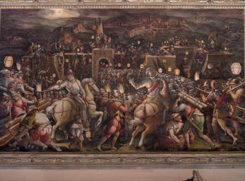 Keywords: Giorgio Vasari - The storming of the fortress near Porta Camollia in Siena - Google Art Project.jpg fresco 1511 Arezzo 1511 1574 Firenze 1574 Giorgio Male 27413413 Vasari Italian 1511 - 1574 /collection/palazzo-vecchio-museum/artwork/the-storming-of-the-fortress-near-porta-camollia-in-siena-giorgio-vasari/27407001/ 1 Giorgio Vasari Painter Architect /artist/giorgio-vasari/4130254/ 4130254 /collection/palazzo-vecchio-museum/ Palazzo Vecchio Museum 27389510 http //www museicivicifiorentini it/en/palazzovecchio /collection/palazzo-vecchio-museum/artwork/the-storming-of-the-fortress-near-porta-camollia-in-siena-giorgio-vasari/27407001/ 1570 Mannerism Italian painting of the 16th century historical subject 760 27407001 False 1570 /collection/palazzo-vecchio-museum/level/first-floor/27452401/ First floor Complete s2011_40 Comune di Firenze painting 1570 1580 w1300 x h760 cm 1570 False 1 35449735449735 Comune di Firenze Object /collection/palazzo-vecchio-museum/level/first-floor/27452401/salone-dei-cinquecento/27328537/ Salone dei Cinquecento the-storming-of-the-fortress-near-porta-camollia-in-siena-giorgio-vasari The storming of the fortress near Porta Camollia in Siena s 1300 historical subject special url_id wAFBmWNxIzao-g PD-old-100-1923 1574 Google Art Project works by Giorgio Vasari Salone dei Cinquecento - Vasari's paintings History of Florence History of Siena Porta Camollia |