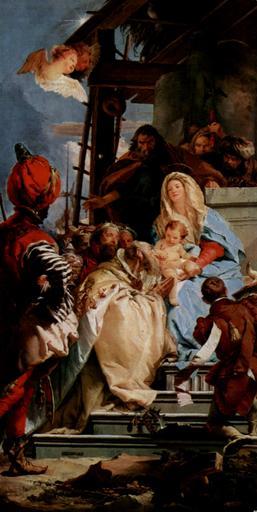 | Keywords: Giovanni Battista Tiepolo 005.jpg  The Adoration of the Magi Oil on canvas cm 425 211 Munich Institution Alte Pinakothek Yorck 1753 Creator Giovanni Battista Tiepolo http //mail wikipedia org/pipermail/wikide-l/2005-April/012195 html Other versions Tiepolo adorazione dei magi JPG PD-old-100 PD-Art-YorckProject DEFAULTSORT Tiepolo Giovanni Battista; Adoration of the magi; Alte Pinakothek München; 1753 Religious paintings by Giovanni Battista Tiepolo Rococo paintings in Germany 1753 paintings Astronomy in art Africans in 18th-century art 1753 Italian paintings in the Alte Pinakothek Paintings in the Alte Pinakothek flat list Rococo paintings of the Adoration of the Magi 1730s paintings in Bavaria 18th-century paintings in the Alte Pinakothek Putti in the air 18th-century oil on canvas paintings in Germany |