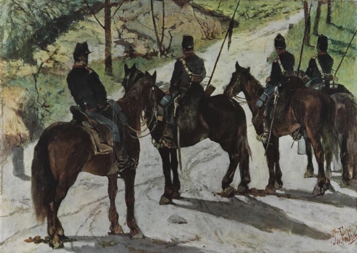 Keywords: Giovanni Fattori – Cavalleggeri in avanscoperta.tiff Artwork Creator Giovanni Fattori Cavalleggeri in avanscoperta 1855 oil canvas Size cm 39 27 5 LangSwitch Cavalrymen on reconnaissance print reproduction Cavalleggeri in avanscoperta riproduzione tipografica LangSwitch Photographed by the Museum of Modern and Contemporary Art of Trento and Rovereto uploaded by User Mushroom Opera fotografata dal Museo d'arte moderna e contemporanea di Trento e Rovereto caricata da User Mushroom PD-old-auto-1923 1924 Mart Military paintings of Giovanni Fattori Cavalry of Italy 19th-century cavalry Reconnaissance |
