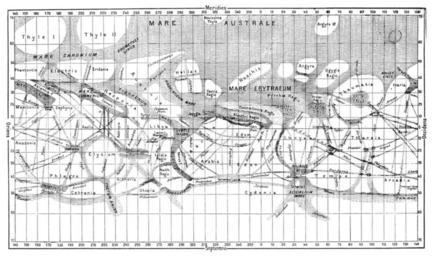 Keywords: Giovanni map mars.jpg Χάρτης του Άρη σχεδιασμένος α ό τον ιταλό αστρονόμο Τζιοβάννι Σκια αρέλλι με τα χαρακτηριστικά κανάλια ου λανθασμένα ιστευόταν ότι υ ήρχαν στον λανήτη Α ό την έκδοση του Καμίλ Φλαμαριόν La Planète Mars The caption from the source reads Giovanni Schiaparelli's map of Mars compiled over the period 1877-1886 used names based on classical geography or were simply descriptive terms; for example Mare australe Southern Sea Most of these place names are still in use today Flammarion La Planète Mars NASA publication http //history nasa gov/SP-4212/contents html SP-4212 On Mars Exploration of the Red Planet 1958-1978 http //history nasa gov/SP-4212/ch1-2 html ch1-2 1886 Creator Giovanni Schiaparelli PD-old-100 <gallery> File PSM V35 D060 Schiaparelli map of mars jpg </gallery> Maps of Mars by Giovanni Schiaparelli Martian canals |