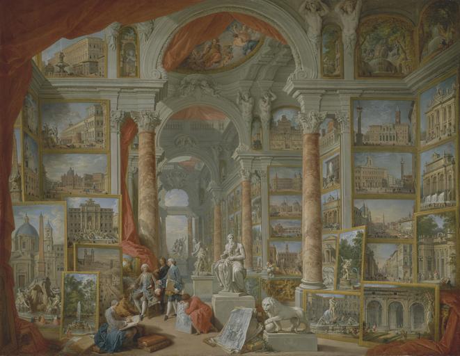 | Keywords: Giovanni Paolo Panini – Modern Rome.jpg Artwork 1757 Oil on canvas 170 2 x 244 5 cm institution Museum of Fine Arts Boston object history 1757 Etienne François Duc de Choiseul b 1719 - d 1785 Paris original commission ; 1792 sold by the Duc de Choiseul to Jacques-Donatien Le Ray b 1726 - d 1803 Chaumont; by descent to his son James Le Ray b 1760 - d 1840 Chaumont and Otsego County NY; by descent to his son-in-law the Marquis de Gouvello; sold by Gouvello to William J Davis; 1834 sold by Davis to the Boston Athenaeum; 1975 sold by the Boston Athenaeum to the MFA Accession Date March 10 1976 Source Museum of Fine Arts Boston credit line accession number 1975 805 From http //www fineart-china com/admin/images/Giovanni 20Paolo 20Pannini1 jpg<br>originally uploaded in en wiki Assessments 1 Two picture galleries with views of Rome PD-old-100-1923 1759 paintings in the United States Modern Rome Giovanni Paolo Pannini Michelangelo's Moses in historical images |