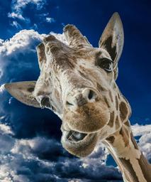 Keywords: giraffe funny clouds sky wild animal head wild animal