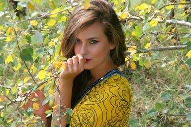 Keywords: girl autumn leaves portrait vegetation beauty seductive yellow