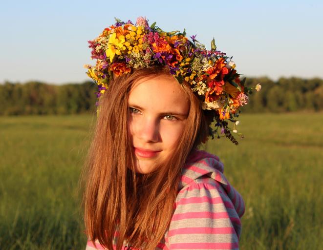 Keywords: girl baby wreath flowers smile joy rite fairy sorceress heathenism antiquity legend life autumn youth witchcraft portrait person hairstyle cap nature werewolf beautiful winsome health conspiracy cute