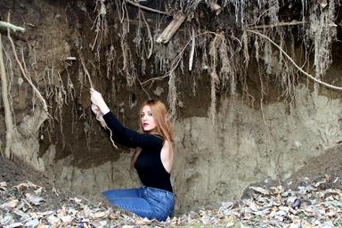 Keywords: girl blonde brown eyes roots beauty