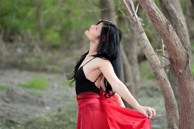 Keywords: girl brunette red beauty forest