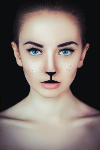 Keywords: girl cat kitten fashion catwoman model makeup portrait