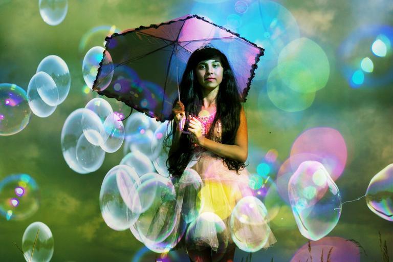 Keywords: girl child bubbles princess umbrella portrait joy summer