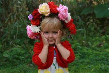 Keywords: girl child wreath rose red coloring portrait innocence beauty
