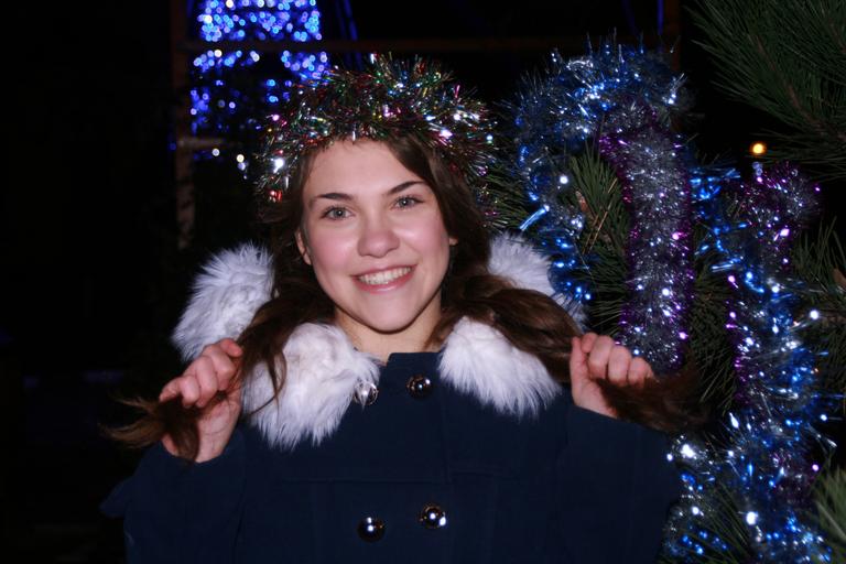 Keywords: girl christmas christmas tree tinsel happiness