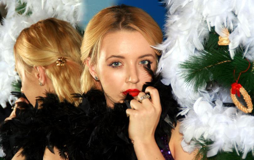Keywords: girl christmas tree mirror snowflakes christmas decorations tinsel holidays