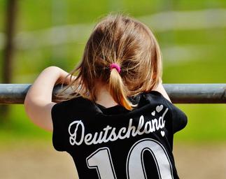 Keywords: girl climb curious gate play out nature human in motion gymnastics children sweet cute fields braids young germany