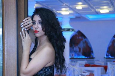 Keywords: girl dress black restaurant model long hair brunette
