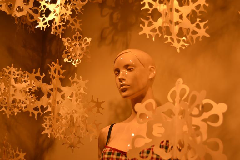 Keywords: girl dummy silence snow face woman showcase shop exposure warm colors map empty impersonal