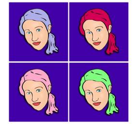 Keywords: girl face lady art cute modern scene woman blue red pink green