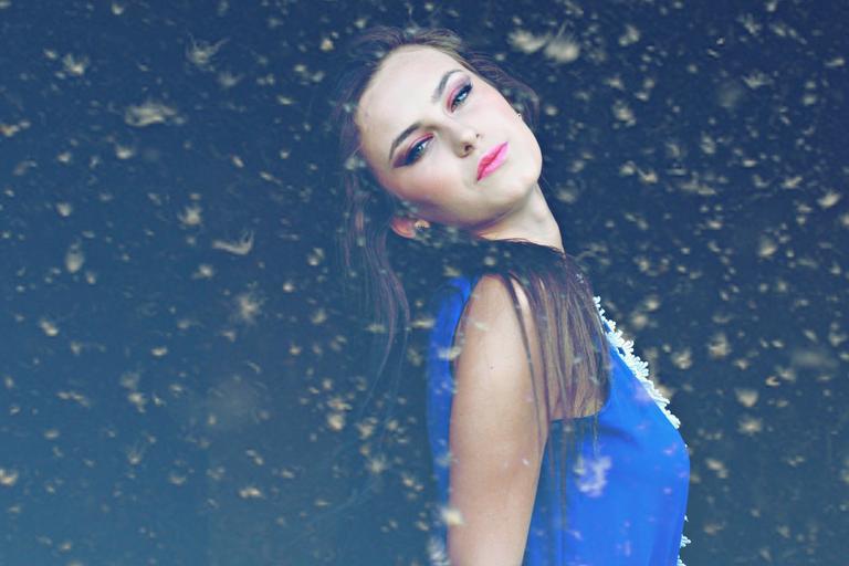 Keywords: girl feather snowflakes flight blue beauty portrait