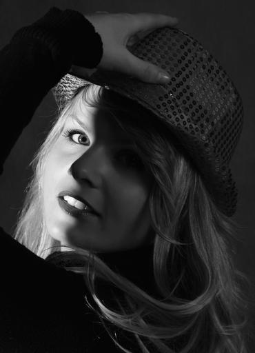 Keywords: girl female model pretty sexy erotic light and shadow blonde hat fashionable elegant chic portrait face to watch look at pretty as a picture young woman view