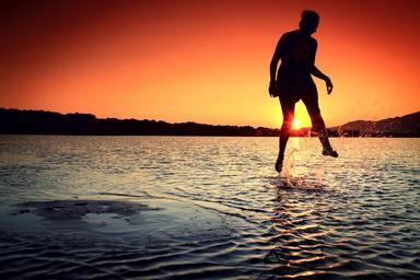 Keywords: girl jump water wonder nature sea sunset sunshine