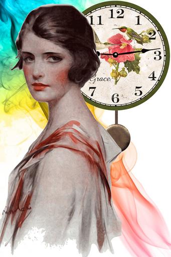 Keywords: girl lady woman female 20 years vintage watercolor watch time old time passing illustration