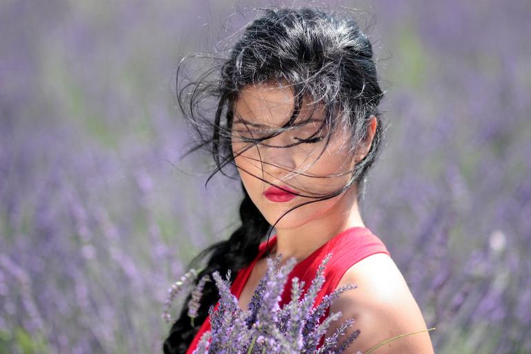 Keywords: girl lavender brunette blue eyes flowers beauty nature