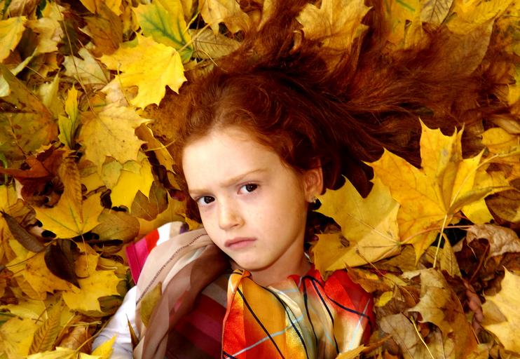Keywords: girl leaves autumn yellow portrait red hair redhead beauty child