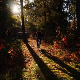 Keywords: girl morning forest cycling autumn sunlight merry nature fun