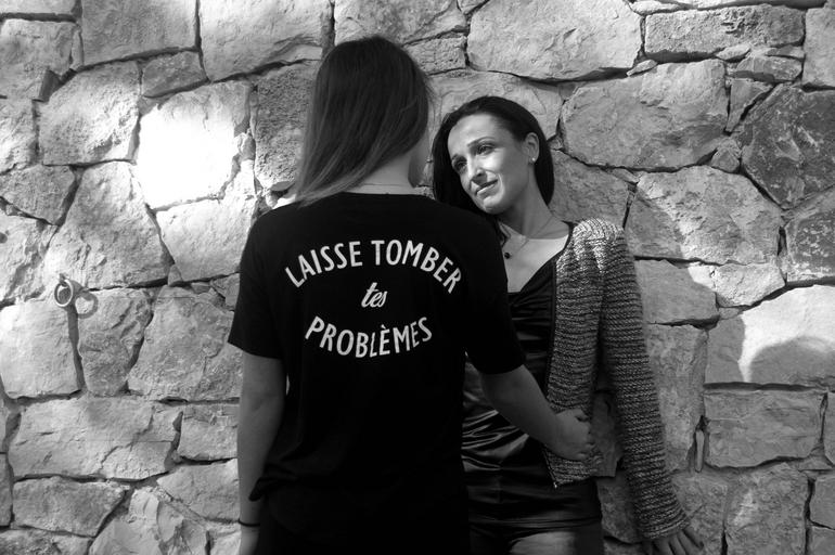 Keywords: girl mother happiness child wall black and white back