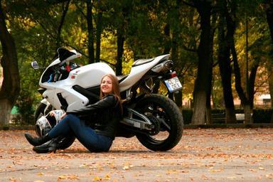 Keywords: girl motorcycle leather jacket ride biker blonde beauty