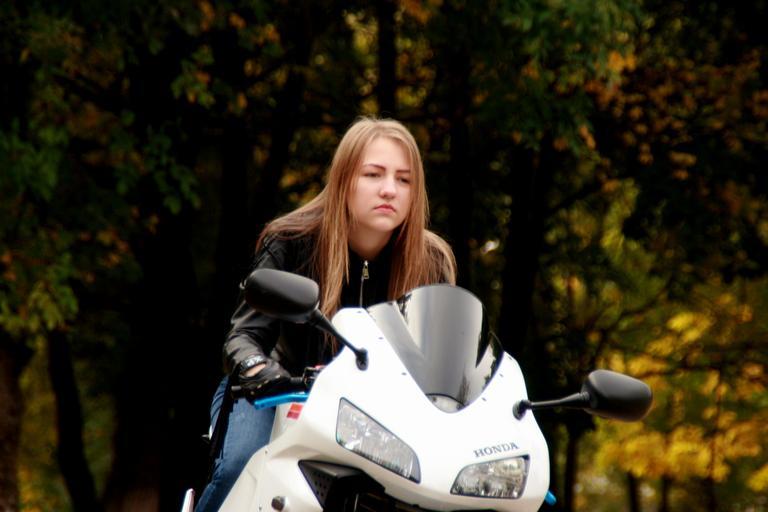 Keywords: girl motorcycle leather jacket ride biker blonde beauty