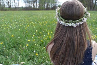 Keywords: girl one wreath hair head meadow