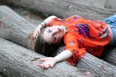 Keywords: girl orange wood timber blue eyes beauty loneliness
