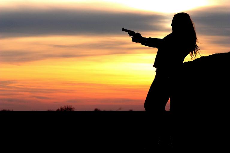 Keywords: girl pistol impuscatura gangster mission shadow in the evening sunset
