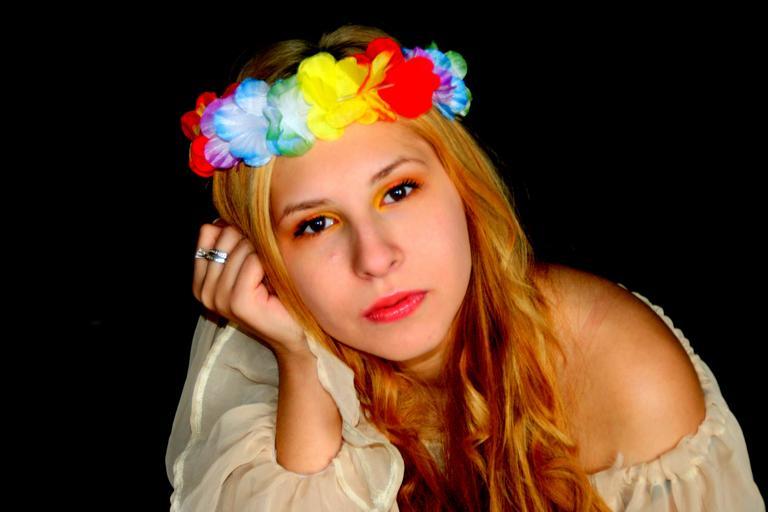 Keywords: girl portrait princess blond hair wreath eye brown story nice