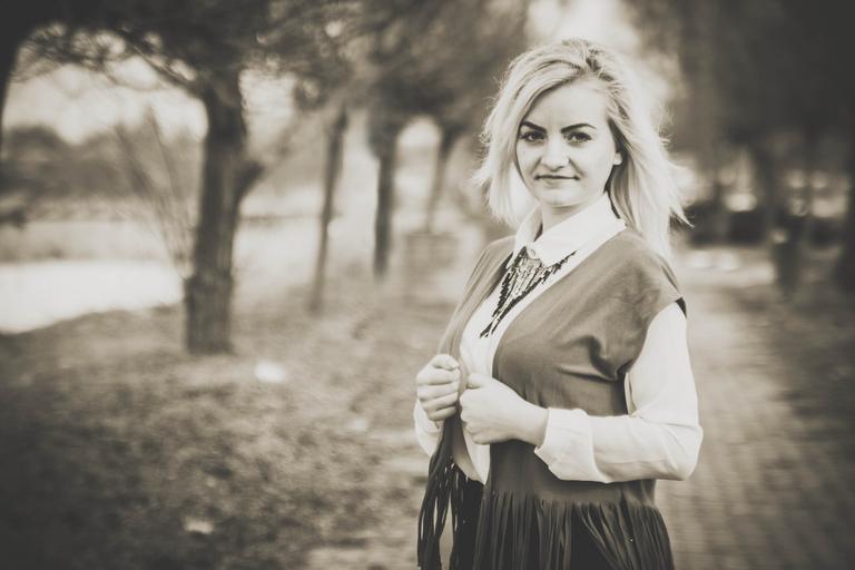 Keywords: girl portrait smile beauty black and white blonde