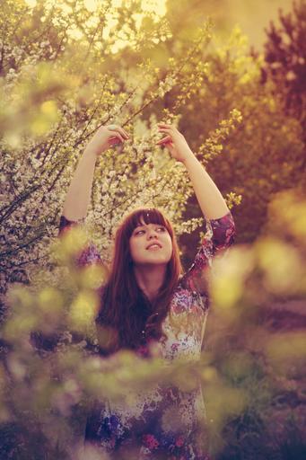 Keywords: girl portrait spring flowers tree sun white flower nature