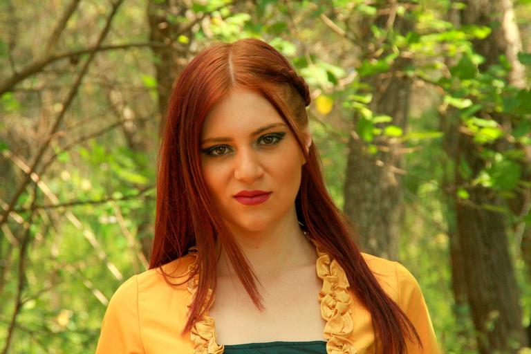 Keywords: girl princess yellow autumn leaves dress forest